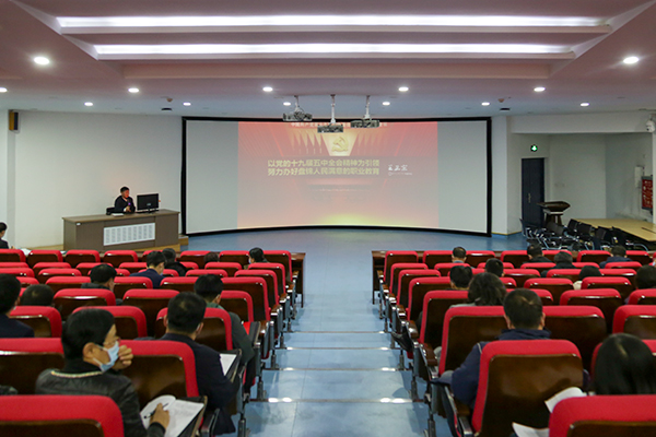 王正东书记围绕十九届五中全会提出的背景和规划《建议》的起草过程,《建议》的基本结构、核心要义和2035年远景目标和“十四五”发展目标,“十四五”时期经济社会发展的重点任务和职业教育承担的责任四个主要方面,结合我市经济发展现状和学院实际,与师生们共同学习党的十九届五中全会精神。