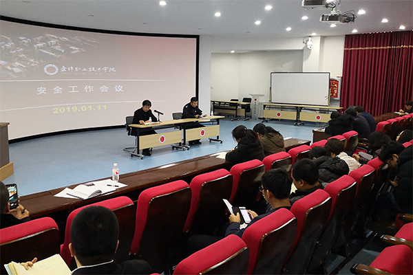 会上安全保卫处胡鹏处长针对2019年省教育厅下发的相关安全文件,结合学院自身情况对各部门在寒假期间及开学初安全工作的注意事项及工作任务,做出具体安排和部署。