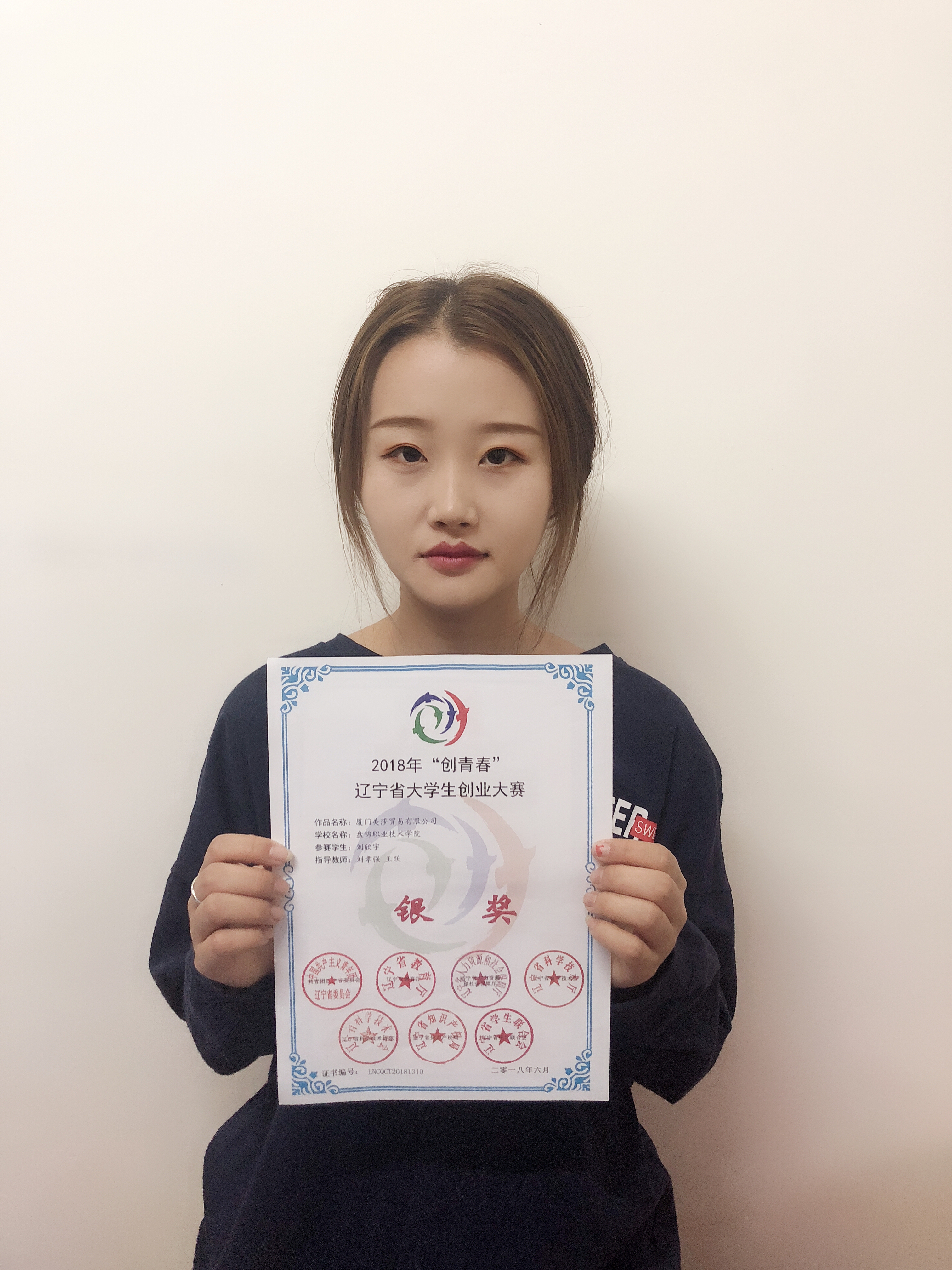 为深入学习宣传贯彻习近平新时代中国特色社会主义思想和党的十九大精神,深化“创出彩”青年创新创业创优活动。由省教育厅和团省委主办的2018年“创青春”辽宁省大学生创业大赛隆重举行。学院财经分院2016级会计专业刘欣宇同学代表学院参加了本次比赛。其参赛作品《厦门美莎贸易有限公司》,最终在全省本专科学校作品中脱颖而出,荣获银奖。