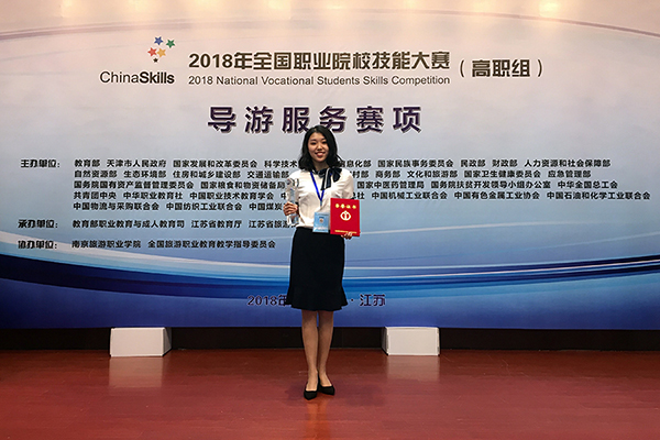 我院选手王璐在各个环节都获得了良好的成绩:导游知识测试占分值15分,我院选手获得满分;才艺运用环节我院选手参赛曲目是《坐上火车去拉萨》,获得8.92分,此环节满分10分。因其情境设计与才艺巧妙的结合运用,给评委老师留下深刻的印象,闭幕式受到了专家着重点评。中文现场导游词创作及讲解、自选景点导游词为一个竞赛环节,在同一场地按序完成。总分65分,我院选手王璐获得了60.82高分。导游英语口语测试总分10分,我们以7.06分较为优异的成绩完成了这个环节的比赛。最终,我院选手以91.8的总成绩获得了全国职业院校技能大赛导游服务赛项一等奖的殊荣,开创了ylzzcom永利总站线路检测在国家大赛历史最好成绩。