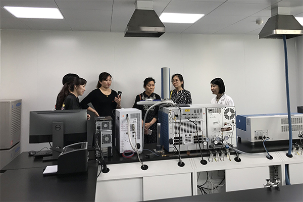 师生分成3组,在我系就职于检验检测中心的毕业生张涵、李景旭、康家硕、于金晖的带领及讲解下,参观了中心的收样大厅、药品检测实验室、微生物检测实验室、理化检测实验室、图书室以及活动室,让师生了解了整个中心实验室建设、工作流程、规章制度和中心文化。通过参观赛默飞世尔科技合作实验室和与依拉勃战略合作实验室,观看了检验人员的现场实验,检验人员生动形象地为师生讲解了气相色谱仪、液相色谱仪、原子吸收分光光度计、电感耦合等离子体质谱仪等各类大型仪器用途和使用方法,认识了中心先进检测设备和技术,了解了检验岗位工作过程。