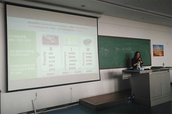 彭讲师从BIM的定义、对BIM的深入理解、BIM在各国的普及程度及国家政策、BIM的应用价值、BIM应用软件及操作以及工程案例等方面,由浅入深、字字珠玑,为现场聆听者带来一场案例生动、感知前沿技术、互动良好的应用讲座,激发起专业教师和学生们对BIM深入学习研究的兴趣,同时开阔了视野,增加了专业知识的积累,尤其对BIM在建设工程领域的应用及前沿技术有了更深刻的认识。
