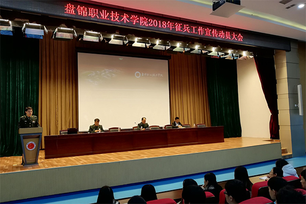 3月16日下午ylzzcom永利总站线路检测2018年征兵工作宣传动员大会在学院图书馆报告厅召开。学院党委副书记、武装部部长李兵,学生工作处处长、武装部副部长邓红伟,盘锦市辽东湾新区政法统战工作部副部长王艮善,统战武装科李策及学院相关部门、二级分院系领导、老师及同学近500人参加了大会。会议由邓红伟副部长主持。