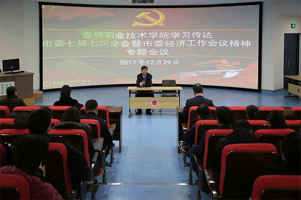 2017年12月29日,学院召开全体党员大会,学习传达市委七届七次全会暨市委经济工作会议精神。学院党政班子全体成员、全院党员、中层干部及部分民主党派代表参加了会议,会议由学院党委书记王正东主持。