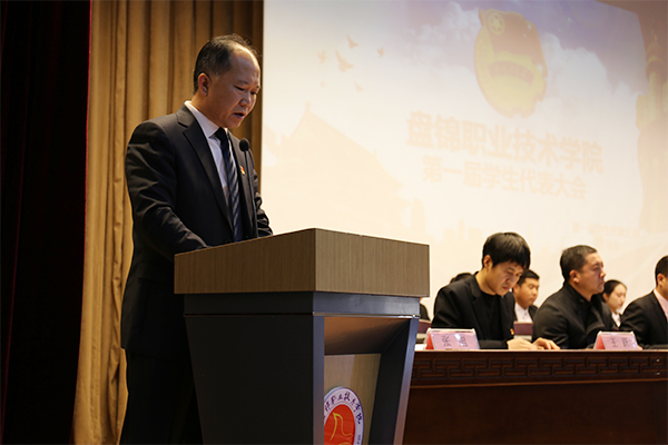 为全面学习宣传贯彻党的十九大精神,高举中国特色社会主义伟大旗帜,以习近平新时代中国特色社会主义思想为指导,充分发挥学生会组织“自我教育、自我管理、自我服务、自我监督”的职能,严格贯彻落实我院共青团改革方案相关工作,努力加强自身建设,推进学生会组织改革发展,不忘初心跟党走,团结和带领全院青年学生在拼搏的青春中成长成才!学院于12月24日在图书馆报告厅召开首届学生代表大会。学院党委副书记李兵、共青团盘锦市委员会学校部部长葛菲、团委副书记蔡志远,各分院系团总支书记以及各分院系的学生代表共计155人参加了会议。