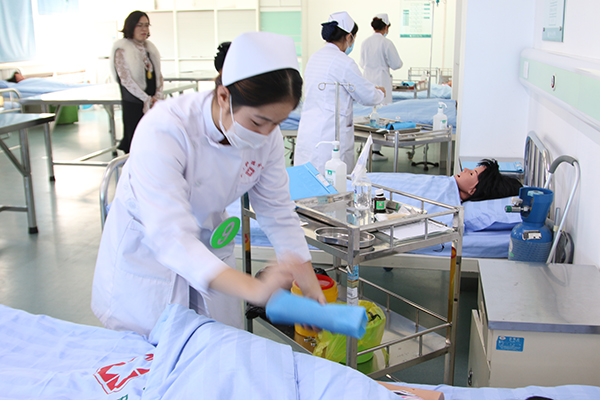 护理技能操作是护理专业学生必备的专业技能,也是其在学习过程中需要掌握的重点科目。本次技能大赛旨在加强同学们的护理专业知识,强化护理技能操作,培养护理人才。本次比赛集合护理教学的内容,设立了心肺复苏、静脉注射和口腔护理等比赛内容。在比赛过程中,全体参赛选手都能认真谨慎、一丝不苟,精心实施每一个操作步骤,其操作效果也得到了评委老师们的赞扬和认可。大赛在严肃、紧张的氛围中顺利完成。
