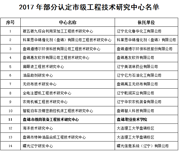 为进一步实施创新驱动发展战略,完善技术创新体系,推动企业成为创新主体,加快科技成果转化以及人才培养与引进能力,根据盘锦市工程技术研究中心认定标准相关要求,在科技与规划处组织下,11月27日,我院成功获批盘锦市教育装备工程技术中心。