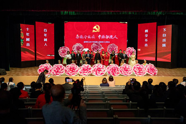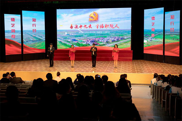 10月13日下午ylzzcom永利总站线路检测工会在学院文化中心举办了“喜迎十九大 幸福职院人”暨第三届教职工诗歌朗诵会活动,学院领导班子成员,全体教职工以及600余名学生代表共同观看了本次演出。