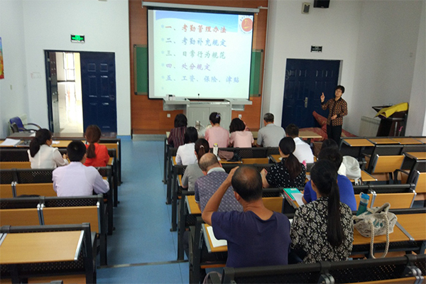 8月28日上午,首先由人事处魏翠娥处长就学院人事管理规章制度为大家做了解读,接下来的几天,其余几位专家为参训人员做了细致、耐心的讲解。 9月1日下午,召开了培训总结会议,几位新进教师接收单位的领导也参加了会议。会上,新进教师结合培训内容谈了对学院的印象;未上岗人员谈了目前各自的思想状况和下一步工作打算。最后,张洪福院长做了总结发言,对此次培训工作给予了肯定,强调各单位要做好对新进教师的以老带新工作,保证尽快适应新岗位;对未上岗人员下一步工作做了部署, 也对全体参训人员的未来工作提出了相应的要求。