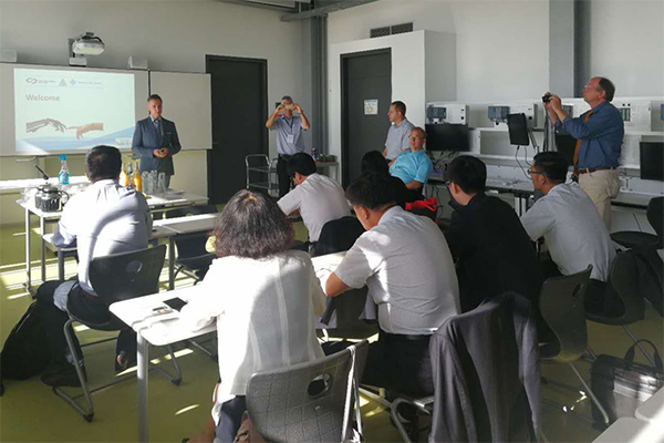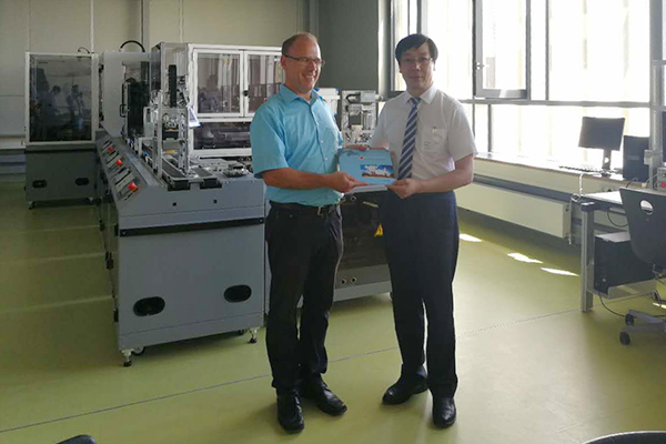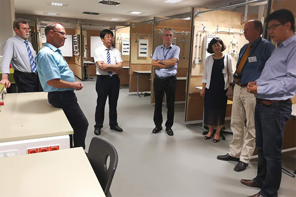 当地时间7月6日,学院考察组拜访了卡尔斯鲁厄海因里希.赫茨学校,进一步了解德国双元制体系下的职业学校结构,参观金属加工与机电专业实训车间,参观工业4.0学习工厂,了解机电与工业4.0学习内容的实施方法论。思考德国职业学校在经济与社会进步中所扮演的角色,以及我们该如何为中国精造2025做出努力努力。双方达成建友好学校意向!下午驱车2个多小时前往瑞士的巴塞尔工商学校进行访问,了解瑞士的双元制教育,参观金属加工与机电实训室,思考在不同文化下,怎样运用双元制教育为自己的社会发展服务。