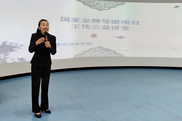 4月27日上午,国家金牌导游、辽宁省导游协会会长王伟女士莅临学院为旅游管理学院百余名同学作了题为《如何做一名好导游》的公益讲座。本次活动也是国家金牌导游首次来到盘锦走进校园。
