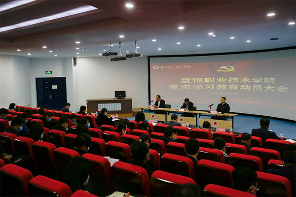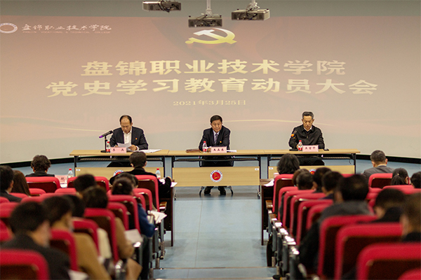 党委书记王正东作动员讲话。他指出,开展党史学习教育,意义重大、责任重大。召开学院党史学习教育动员大会,主要任务是学习贯彻中央、省、市委党史学习教育动员部署会议精神,对学院学习教育工作的指导思想、方法步骤、组织保障等工作进行全面扎实安排,动员全院党员干部“学党史、悟思想、办实事、开新局”,进一步坚守初心、砥砺奋进,以更加昂扬的姿态、更加饱满的热情,奋力提升学院党建工作的整体水平,在争创省级高水平现代化职业院校的征程中,厘清发展思路、激发干事热情,以优异成绩迎接建党一百周年。他强调,要提高站位,深刻认清党史学习教育的重大意义。要真抓实干,全面落实好党史学习教育各项工作任务。要加强领导,认真组织好学院党史学习教育。