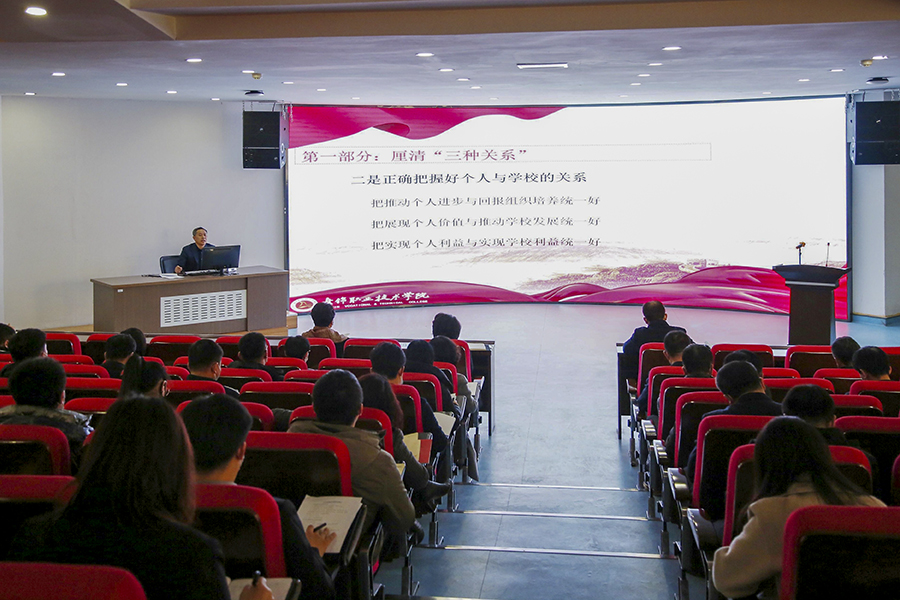 王首中同志聚焦落实习近平新时代中国特色社会主义思想,贯通“党要管党、从严治党”主题,围绕厘清“三种关系”、把牢“三项要求”、提升“四种能力”,结合近年来学校发生的典型案例,从身边人、身边事入手谈认识、谈体会、谈践行,教育引导党员干部要增强“四个意识”、坚定“四个自信”、坚决捍卫“两个确立”、始终做到“两个维护”。王首中告诫全校党员干部要牢牢把“知敬畏、存戒惧、守底线”铭于心、践于行。要树好“戒尺”。做到敬畏组织、敬畏人民、敬畏法纪,切实把制度约束的不敢,转化为内在自觉的不想;要立好“规矩”。对标党纪处分条例、高职教师行为十项准则和工作职责,强化政治规矩、行业规矩和岗位规矩意识,做到立德树人、德技双修;要正好“身行”。坚守做人、处事、用权、交友底线,自觉净化社交圈、生活圈和朋友圈,切实转变作风、遵规守纪、廉洁从政。